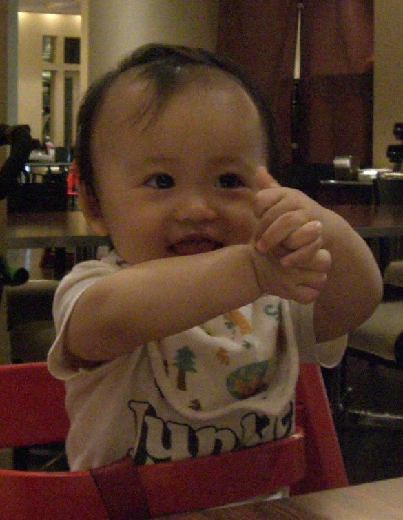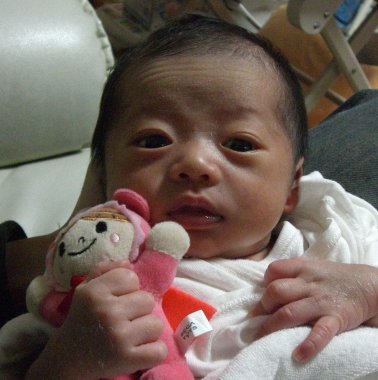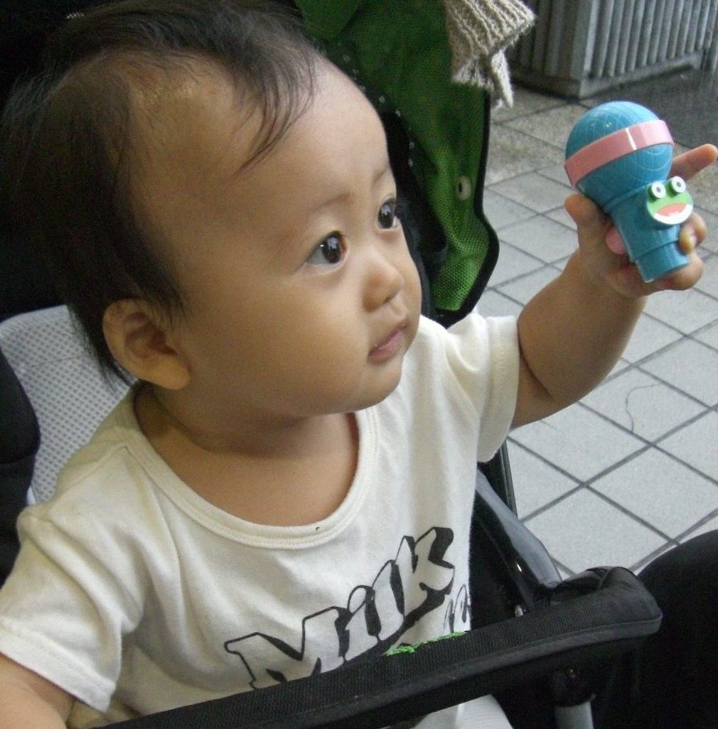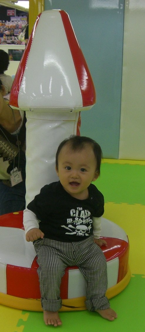 おいら、先週の3連休 めっちゃいっぱいの人に遊んでもらってん♪ まず、土曜日は かーかーのお友達が家に遊びに来てくれて、おいらの大好きな鉄平君も来てくれたのだ♪♪ 鉄平君はおいらより7ヶ月上の先輩!! でも。。。おいら興奮しちゃって、歩行機で鉄平兄貴を踏むは引くはで。。。。。 泣かせてしまって。。。。ごめんなさい。。鉄平兄貴。。。 又 遊んでね!鉄平兄貴★★ 楽しい土曜日が終わり、日曜日!この日は本部長のお店に開店お祝いに行ってきたのだ!! おいら、初めての天王寺!! とーとーとかーかーは天王寺を≪修行の地≫。。。。と言ってた。。。。 そんな修行の地 天王寺に本部長のお店は有るのだけど、その前に天王寺のカリスマ サッキー氏の店にちょっと寄り道! 凄かったぁ!サッキーのお店 壁から鹿が出てきてたり、木がはえてたり。。。上の階は○○○ドールの店だったり。。。。。。。 そんなサッキー氏の店にバイバイして目的地 本部長の店に向う!! オレンヂ色のお店<TSUKASA RECORDS>の看板♪♪ とても綺麗なオレンヂ色★ エルメスカラーなオレンヂ色★爽やかなオレンヂ色★ そんな素敵のオレンヂ色のお店の奥に巨漢な本部長が座ってる。。。 。。。。。。。爽やかに見える。。。。。。 この日は中谷兄さんも遊びに来てて おいらが帰る時に中谷兄さんから 生まれて初めてのおこづかい貰いましたっ☆☆☆☆☆ 中谷兄さん、本部長 有難う御座いました! おいら嬉しくて お札 握りしめてたら、かーかーに直ぐに没収されました。。。。。。。 そして、月曜日!この日はかーかーの大事なお友達の結婚式★★★ ゆうこちゃんって言うんだけど、おいらが生まれた時 病院に駆けつけてくれたみたいで おいらの事を可愛がってくれるお姉ちゃん!! かーかーとゆうこちゃんが初めて出会った時 ゆうこちゃんはピンク色のドレッド、カーカーは緑色のスパイラルパーマ。。。 二人で歩けば、周りから 【カビ・ばい菌】っとよく言われたそうで。。。。 とても、懐かしんでた。。。。。 みんな、ニコニコで楽しい1日だったぁ!ゆうこちゃんもとっても綺麗な花嫁さんだったし★★★★ 大忙しなおいらだったけど、いっぱいの人に遊んでもらった楽しい楽しい3日間でした。。。。