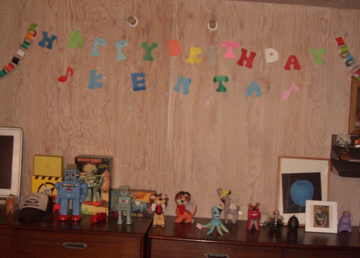 おいら、先週の3連休 めっちゃいっぱいの人に遊んでもらってん♪ まず、土曜日は かーかーのお友達が家に遊びに来てくれて、おいらの大好きな鉄平君も来てくれたのだ♪♪ 鉄平君はおいらより7ヶ月上の先輩!! でも。。。おいら興奮しちゃって、歩行機で鉄平兄貴を踏むは引くはで。。。。。 泣かせてしまって。。。。ごめんなさい。。鉄平兄貴。。。 又 遊んでね!鉄平兄貴★★ 楽しい土曜日が終わり、日曜日!この日は本部長のお店に開店お祝いに行ってきたのだ!! おいら、初めての天王寺!! とーとーとかーかーは天王寺を≪修行の地≫。。。。と言ってた。。。。 そんな修行の地 天王寺に本部長のお店は有るのだけど、その前に天王寺のカリスマ サッキー氏の店にちょっと寄り道! 凄かったぁ!サッキーのお店 壁から鹿が出てきてたり、木がはえてたり。。。上の階は○○○ドールの店だったり。。。。。。。 そんなサッキー氏の店にバイバイして目的地 本部長の店に向う!! オレンヂ色のお店<TSUKASA RECORDS>の看板♪♪ とても綺麗なオレンヂ色★ エルメスカラーなオレンヂ色★爽やかなオレンヂ色★ そんな素敵のオレンヂ色のお店の奥に巨漢な本部長が座ってる。。。 。。。。。。。爽やかに見える。。。。。。 この日は中谷兄さんも遊びに来てて おいらが帰る時に中谷兄さんから 生まれて初めてのおこづかい貰いましたっ☆☆☆☆☆ 中谷兄さん、本部長 有難う御座いました! おいら嬉しくて お札 握りしめてたら、かーかーに直ぐに没収されました。。。。。。。 そして、月曜日!この日はかーかーの大事なお友達の結婚式★★★ ゆうこちゃんって言うんだけど、おいらが生まれた時 病院に駆けつけてくれたみたいで おいらの事を可愛がってくれるお姉ちゃん!! かーかーとゆうこちゃんが初めて出会った時 ゆうこちゃんはピンク色のドレッド、カーカーは緑色のスパイラルパーマ。。。 二人で歩けば、周りから 【カビ・ばい菌】っとよく言われたそうで。。。。 とても、懐かしんでた。。。。。 みんな、ニコニコで楽しい1日だったぁ!ゆうこちゃんもとっても綺麗な花嫁さんだったし★★★★ 大忙しなおいらだったけど、いっぱいの人に遊んでもらった楽しい楽しい3日間でした。。。。